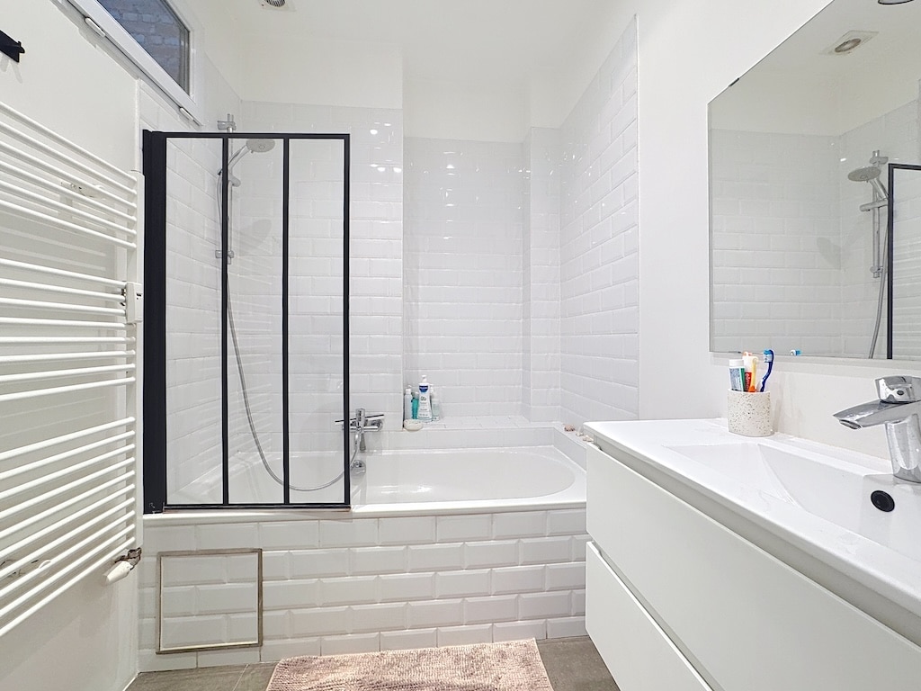 Salle de bain moderne et minimaliste avec douche et baignoire