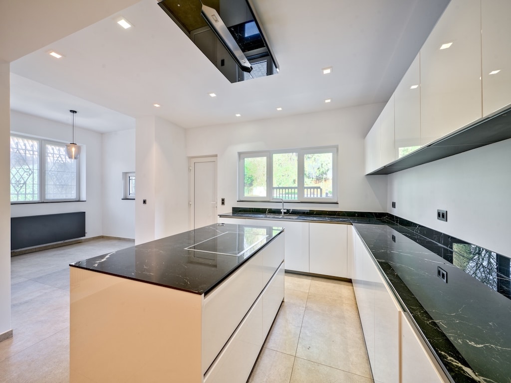 Cuisine Moderne avec Îlot Élégant et Lumineux
