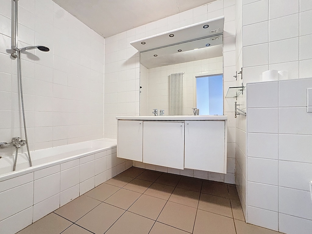 Salle de bain moderne minimaliste avec baignoire douche meuble élégant et luminosité naturelle