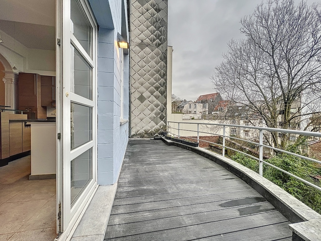 Balcon Moderne Avec Vue Urbaine Et Décor Texturé
