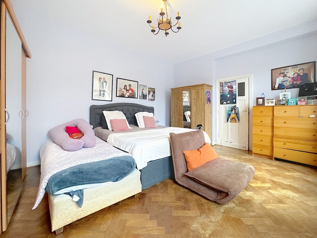 Chambre Confortable avec Lit, Bois et Décor Lumineux