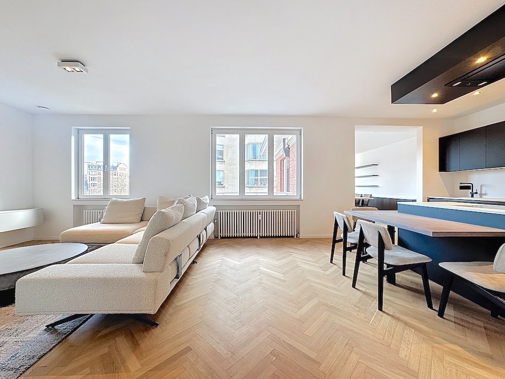Situé au deuxième étage d’un immeuble bien entretenu avec ascenseur, à proximité immédiate de toutes les commodités (transports en commun, commerces et écoles), ce magnifique duplex penthouse de ± 172 m² vous séduira par sa situation, sa luminosité, son standing, la qualité de ses finitions et la fonctionnalité de ses espaces.