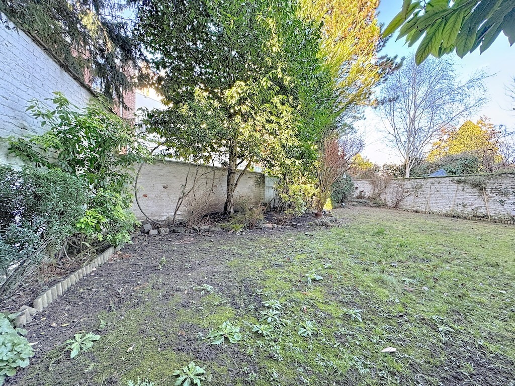 Un jardin paisible avec une pelouse verdoyante entouré de grands arbres et de buissons offrant un espace naturel et calme idéal pour la détente et la méditation Une petite clôture légère ajoute une touche de charme à cet oasis de tranquillité