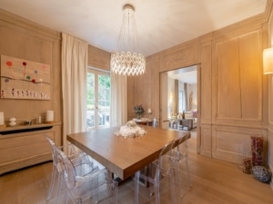 Elegante eigentijdse eetkamer met kristallen kroonluchter