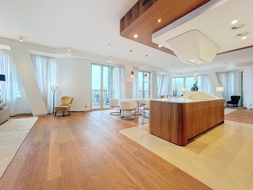 Salon Moderne Lumineux avec Cuisine Ouverte en Bois